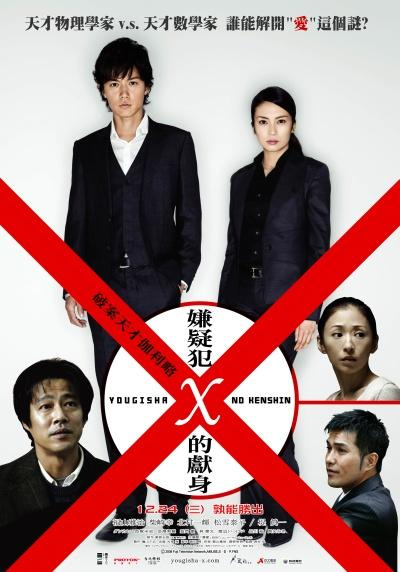 劇情簡介:東野圭吾直木獎小說改編。總是透過窗戶凝視著隔壁女子的孤獨數學天才(堤真一),和女兒相依為命於都會一隅的寂寞女子(松雪泰子),兩道孤寂的靈魂,因為一場偶發的犯罪交會,他決定獻出一切,只為帶給她永恆的幸福;面對著這般義無反顧的犧牲,她又該如何做出人生最困難的抉擇?這段賭上生命的愛情之路盡頭,將會有著什麼等待著兩人?